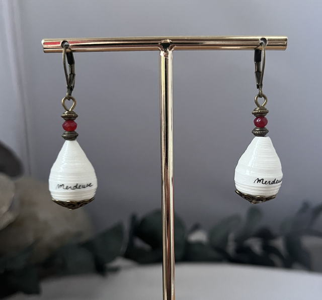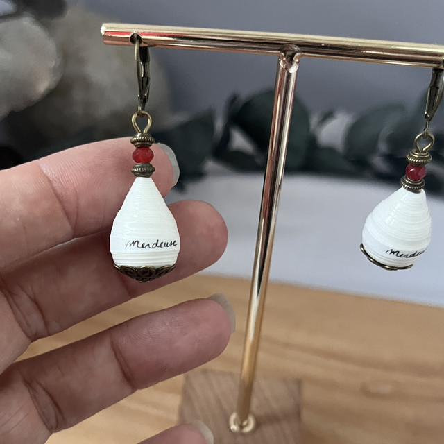 Boucles d’oreilles réalisées à partir de papier, écriture à l’encre de Chine (personnalisable, voir conditions en bas de description).