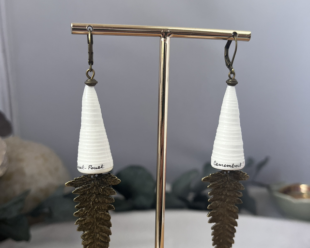 Boucles d’oreilles réalisées à partir de papier, écriture à l’encre de Chine (personnalisable, voir conditions en bas de description).