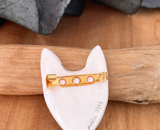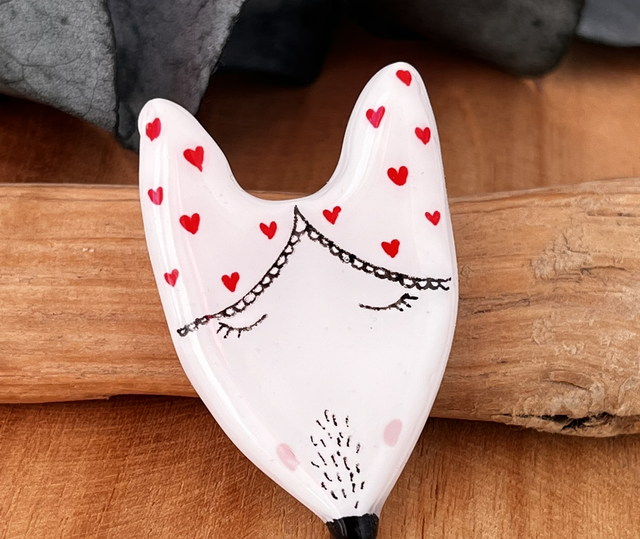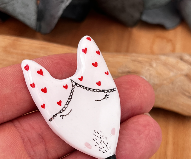 Je vous propose cette broche réalisée à la main en argile polymère, peinte à la main et résinée. L’attache au dos du renard est une broche dorée à l’or fin.